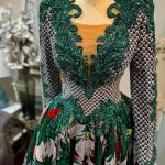 SLEEVELESS DOME SHAPED MINI DRESS WITH HAND EMBROIDERED FLORAL DETAIL