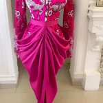 SLEEVELESS DOME SHAPED MINI DRESS WITH HAND EMBROIDERED FLORAL DETAIL